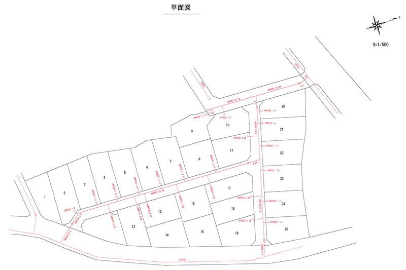 給排水工事申請のための、申請書類・給排水・道路占用図面作成を行います。